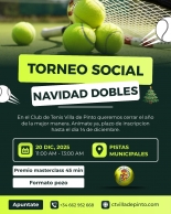 Por undécimo año consecutivo el Club de Tenis Villa de Pinto tiene a bien informarles de la organización del Torneo Federado de Tenis Villa de Pinto.